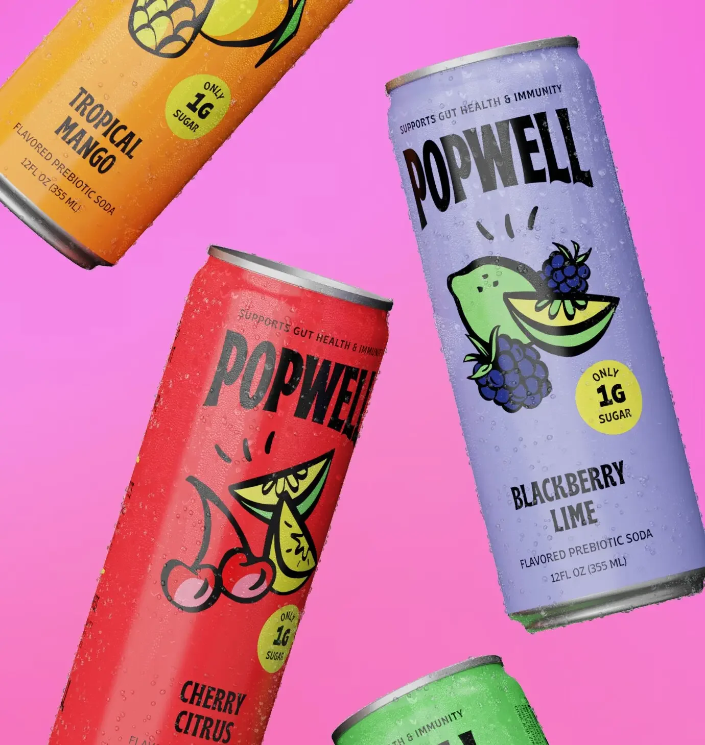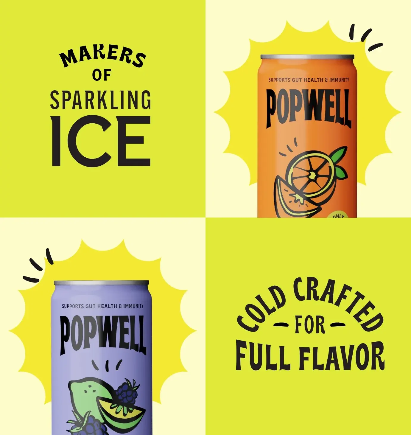Naming played a central role in our efforts. And, in Popwell, I landed on a handle that speaks in an immediate way to both the full-flavored appeal of soda as well as the wellness halo of prebiotics. Next, I created a suite of craveable flavor names along with bright, benefit-forward messaging and playful packaging copy. The result? A brand that pops on shelf and successfully announced the arrival of a noisy newcomer in the functional beverage category.