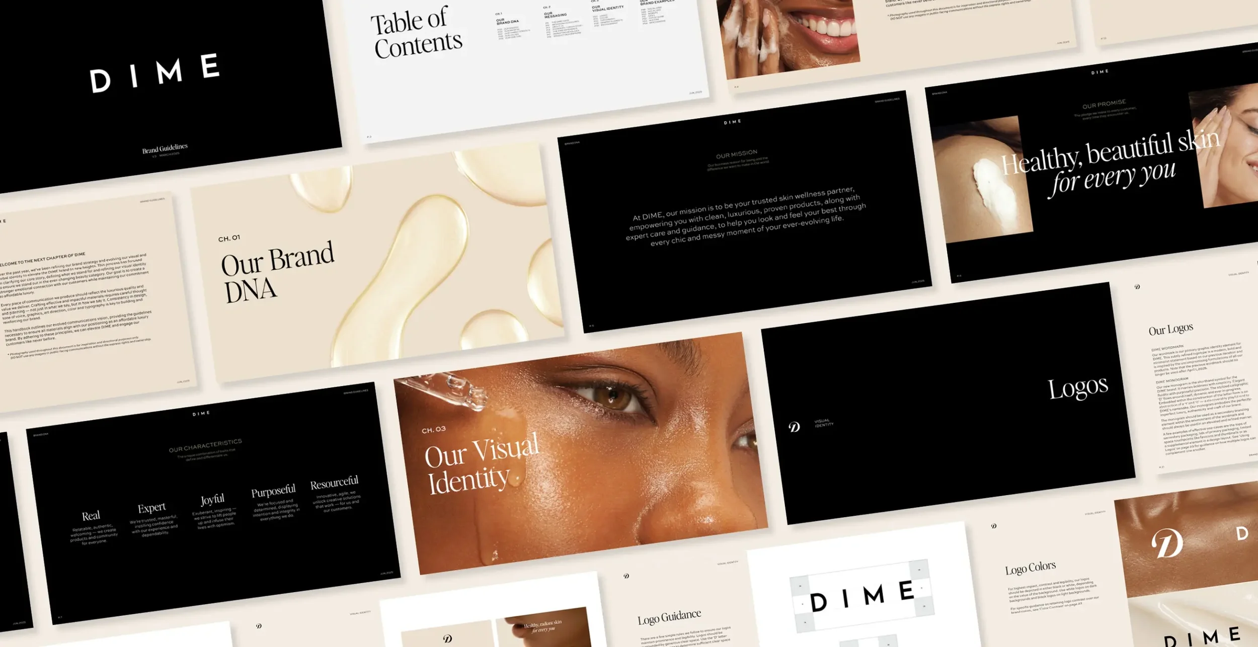 DIME was already a multimillion-dollar company when they came looking for a makeover. The issue? Even with a catalog of viral cross-category products and an avid consumer base, their success was built largely on influencer partnerships and discount-driven sales. Ready to broaden their retail reach and boost market share, they needed a true, codified brand — one that could effectively differentiate them in the crowded clean beauty category, build affinity and propel future growth.