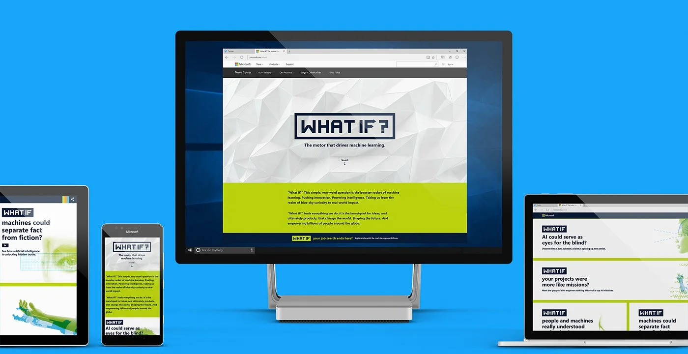 As writer/CD on the project, I drove conceptual and messaging efforts. Realizing that “what if?” queries have always been the fuel of scientific discovery, I made them the catalysts of our campaign, crafting copy for a suite of digital banners and an accompanying microsite, on which people encountered timely ML/AI-related questions that led them to engage with corresponding long-form content and, ultimately, learn about Microsoft’s open roles. The campaign delivered, doubling conversions week over week and filling all positions in just two months.